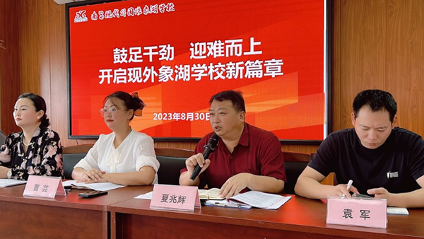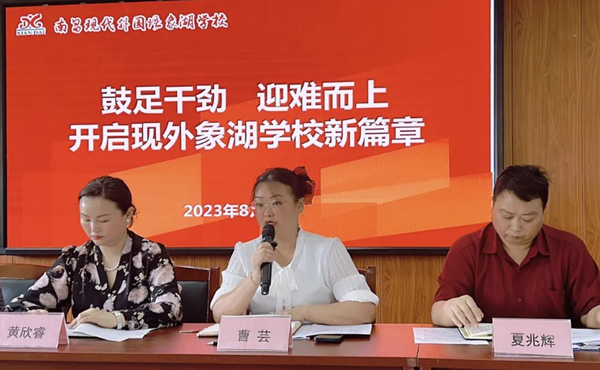 絢爛不止今夏,遠夢始于新秋。為全面做好開學工作,明確新學期各項工作職責與目標,8月30日,南昌現(xiàn)代外國語象湖學校召開了2023年秋季開學工作部署會,會議由辦公室主任夏兆輝主持,集團院校部黃欣睿總監(jiān)、學校行政及全體教職工參加開學工作部署會議。