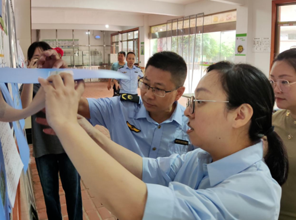 2023年9月14日上午,南昌縣縣委常委統戰(zhàn)部皮部長、八月湖街道辦市場監(jiān)管局李局長等領導一行冒著蒙蒙細雨深入我校進行安全檢查,全面檢查了學校食堂開學后的師生伙食服務情況及食品衛(wèi)生安全工作。