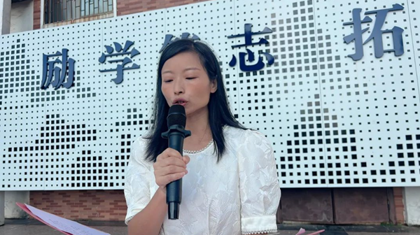 熊小琴老師呼吁大家:切莫以為只有生在亂世才能為國分憂,欲報國何須生于亂世,又何止在沙場上拼殺?熊老師說道:“親愛的同學(xué)們,我們是初開的鮮花,我們是初升的太陽,我們是民族的希望,我們的戰(zhàn)場便是這足下的土地,讓我們時刻謹(jǐn)記‘勿忘國恥 強我國防’,為中華之崛起而讀書! 為中華之騰飛而讀書!”