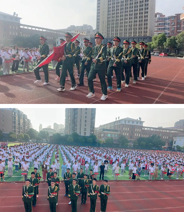 國歌響起,五星紅旗在全體學(xué)生的深切注目下冉冉升起。國旗鮮紅明朗隨風(fēng)飄揚,國歌雄偉嘹亮慷慨激昂,這一刻,相信在場學(xué)生無一不被這莊嚴(yán)肅穆的時刻感染,滿懷敬意,內(nèi)心感到無比自豪與幸福。