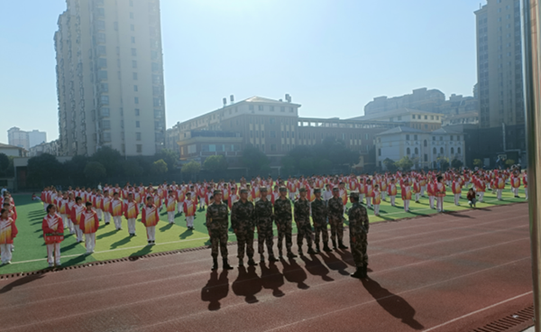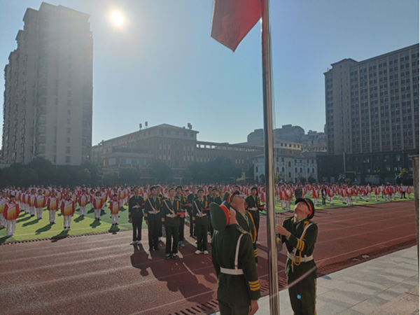 七年級新生隊列整齊地站在操場上,儀式伴隨著嘹亮的國歌聲,在鮮艷的五星紅旗下拉開了帷幕。