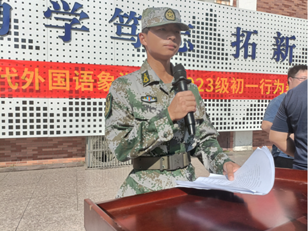 王校長發(fā)表了熱情洋溢的講話,對全體參訓人員提出了明確要求,希望同學們時刻謹記“強國有我”,健強體魄,在為期三天的習慣養(yǎng)成訓練中形成堅忍不拔、迎難而上的品性。