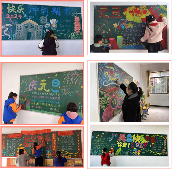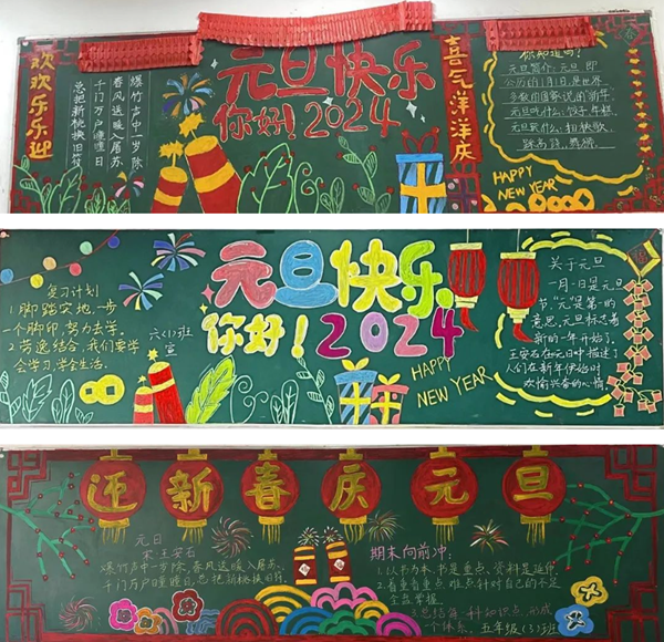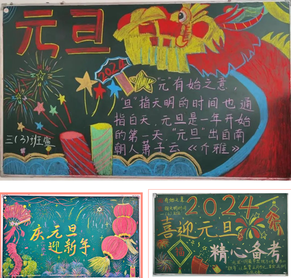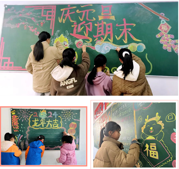 老師和同學(xué)們用彩色的粉筆和靈巧的手,描繪著他們對新年的憧憬和心中美好的祝福。