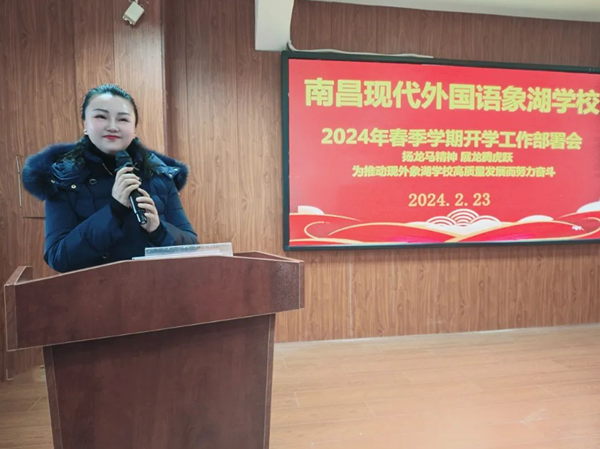 甲辰新春到,奮進(jìn)啟征程。為確保新學(xué)期教學(xué)工作平穩(wěn)、有序、高效開展,進(jìn)一步貫徹落實新課程標(biāo)準(zhǔn),深化課堂教學(xué)改革,穩(wěn)步提升教學(xué)質(zhì)量,2024年2月23日下午15點,南昌現(xiàn)代外國語象湖學(xué)校召開2023-2024學(xué)年度春季開學(xué)工作部署會。集團(tuán)總監(jiān)黃欣睿、校領(lǐng)導(dǎo)及全體教職工參加會議。由辦公室主任夏兆輝主持會議。