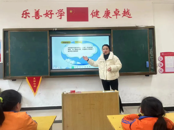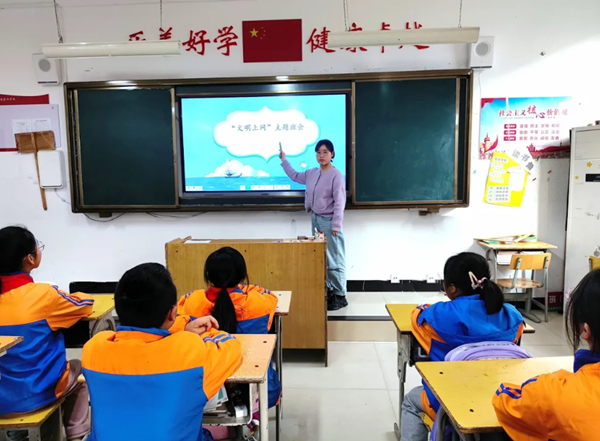 班主任還讓同學(xué)們了解網(wǎng)絡(luò)具有雙面性,知道網(wǎng)絡(luò)帶來的危害,引導(dǎo)同學(xué)們正確認識、科學(xué)對待、合理使用網(wǎng)絡(luò),了解預(yù)防沉迷網(wǎng)絡(luò)知識和方式,提高對不良網(wǎng)絡(luò)游戲等危害性的認識,自覺抵制網(wǎng)絡(luò)不良信息和不法行為。引導(dǎo)同學(xué)們文明上網(wǎng),健康上網(wǎng),增強自我保護意識。