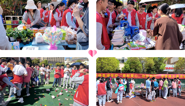 活動(dòng)現(xiàn)場(chǎng)人頭攢動(dòng),熱火朝天,吆喝聲、歡笑聲,聲聲入耳。各路銷售能手穿梭在攤位間,使出渾身解數(shù),吸引一批又一批“顧客”駐足欣賞消費(fèi),“掌柜們”持籌握算,喜笑顏開,“顧客”們則心滿意足,流連忘返?;顒?dòng)中,同學(xué)們體驗(yàn)到了付出與收獲并存的快樂(lè),感受到了助人為樂(lè)、奉獻(xiàn)社會(huì)的價(jià)值。