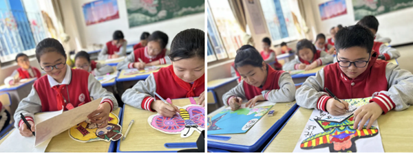 活動(dòng)前,美術(shù)老師對學(xué)生講述了風(fēng)箏的由來和形狀的發(fā)展史,并用一些視頻來加深同學(xué)們對風(fēng)箏的理解。隨后,孩子們在老師的帶領(lǐng)下充分發(fā)揮想象力,一筆一畫用色彩點(diǎn)綴風(fēng)箏,翩翩欲飛的蝴蝶、古靈精怪的魚兒。