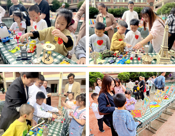孩子們駐足在作品展示區(qū),對哥哥姐姐們DIY的創(chuàng)意小制作愛不釋手,久久不舍離開。
