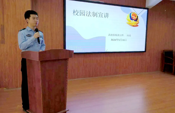 為了進(jìn)一步加強(qiáng)青少年法治教育,全面提高師生的法治意識和安全防范能力,預(yù)防未成年人犯罪,建設(shè)平安、健康、和諧的法治校園環(huán)境,2024年5月16日,我校特邀昌南新城派出所閔警官和李警官為我校的學(xué)生開設(shè)校園法制講座。