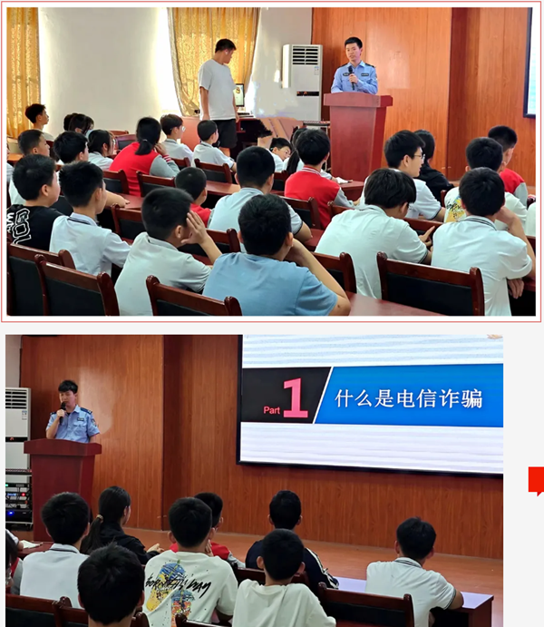 首先,閔警官用案例解說的形式,圍繞三個方面的內(nèi)容展開:一是交通安全,二是校園霸凌問題和青少年犯罪,三是防溺水教育。隨后,李警官重點(diǎn)提醒青少年謹(jǐn)防電信詐騙。